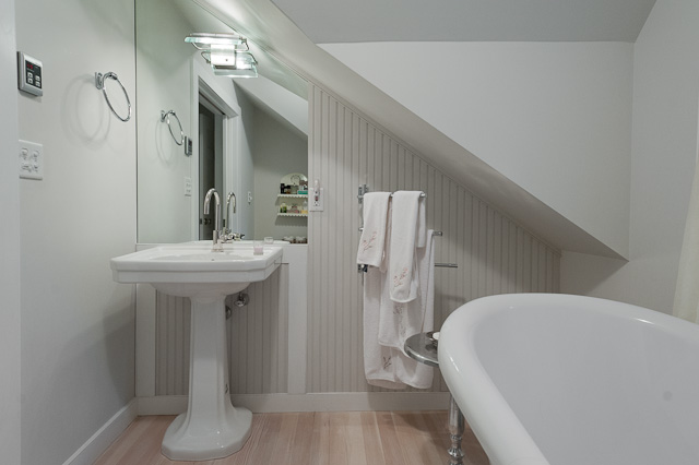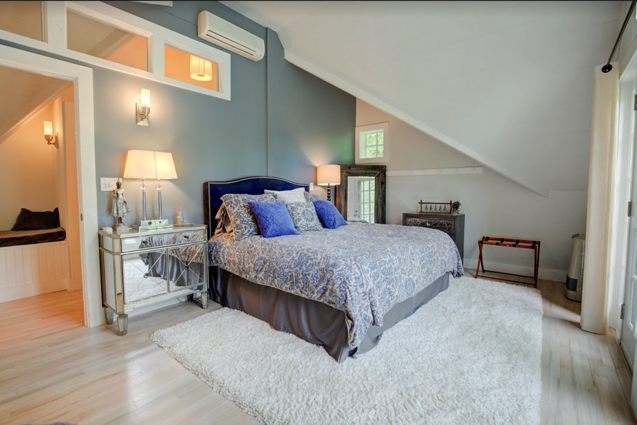 Upstairs, the old hay loft was reimagined as a two-bedroom, two-bath retreat, complete with a Juliet balcony overlooking the pond and waterfall. The result is a sweet, character-filled sanctuary you’ll never want to leave.